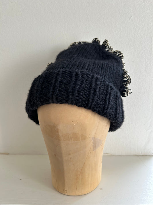 AusverkauftSchwarzer Hut mit Salt & Pepper Rüschen