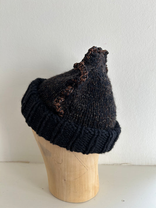 AusverkauftSchwärzlicher Hut mit bräunlichen Rüschen