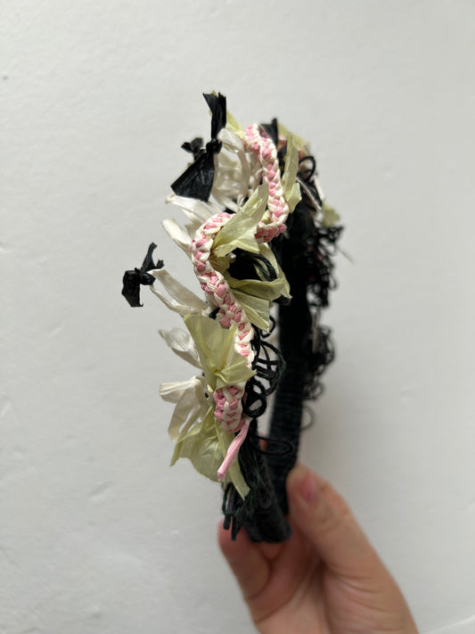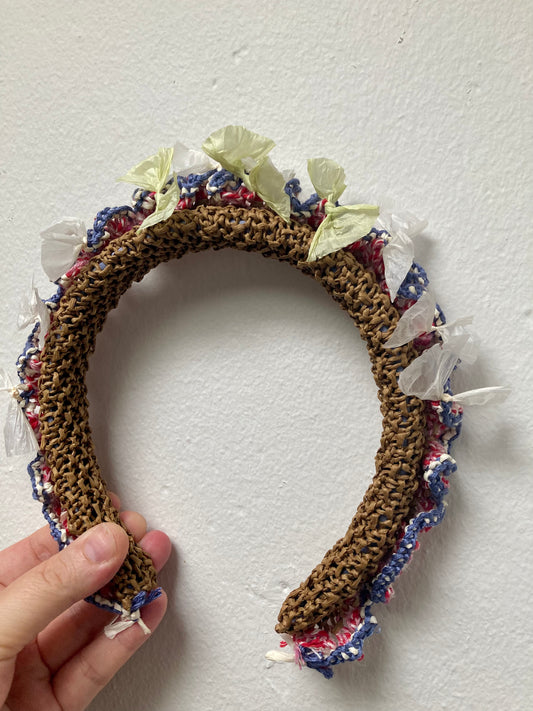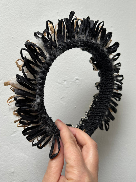 AusverkauftHaariges Stirnband aus Seide und Bast