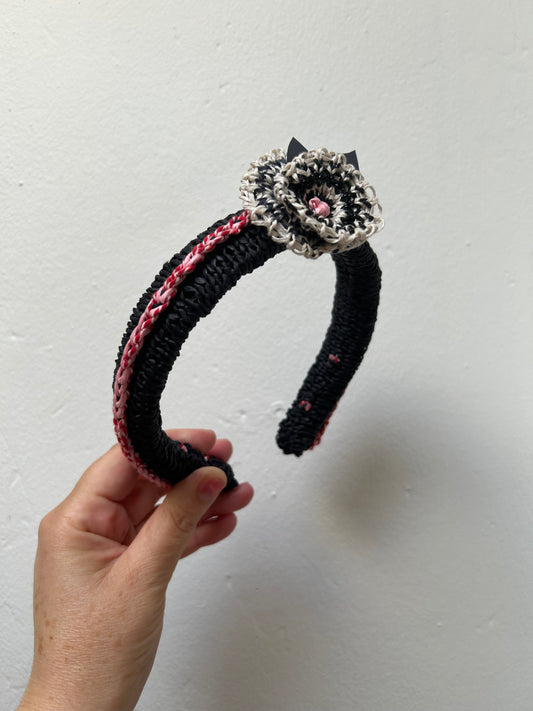 AusverkauftSchwarzes Stirnband mit Vintage-Blumen