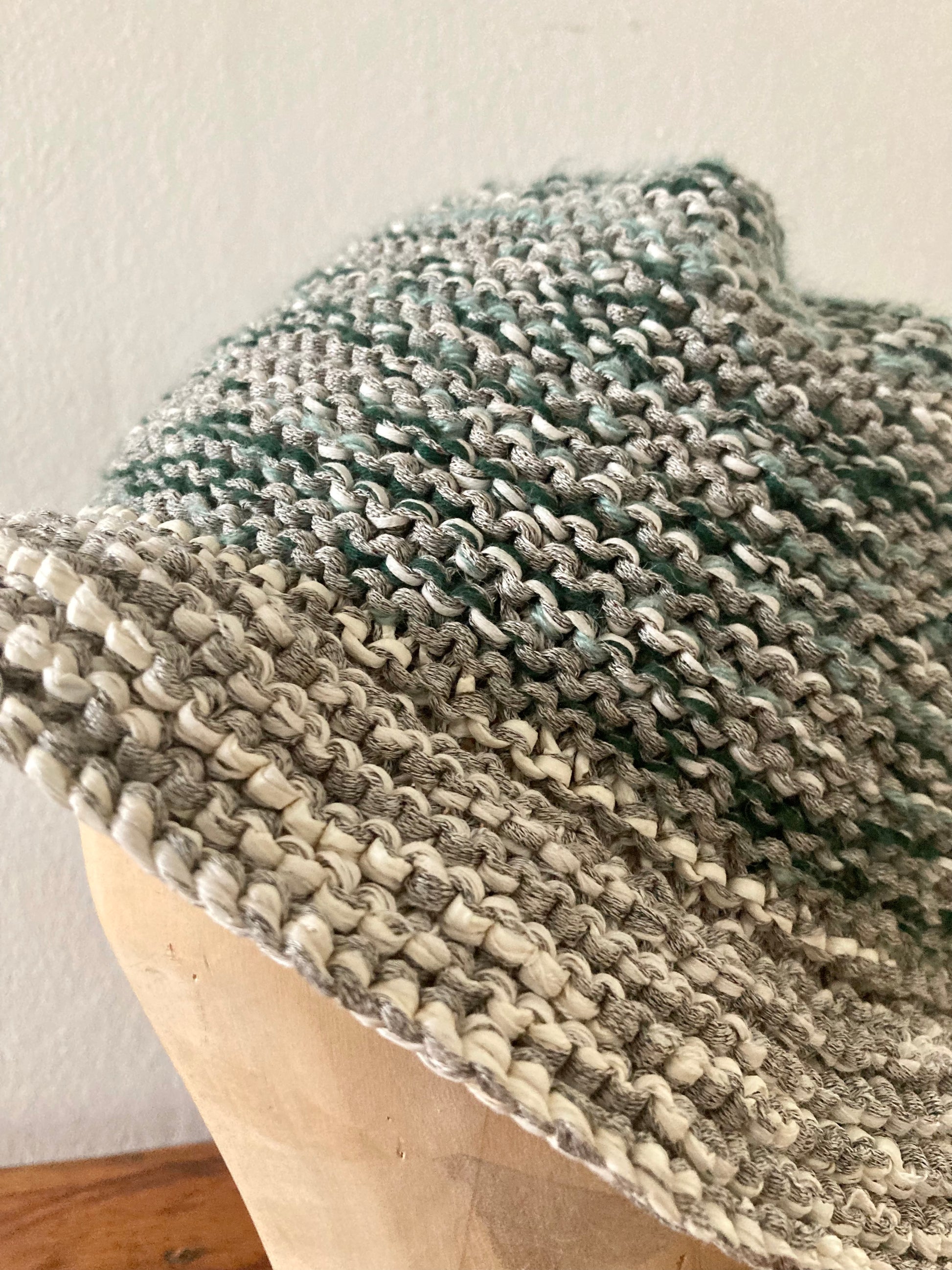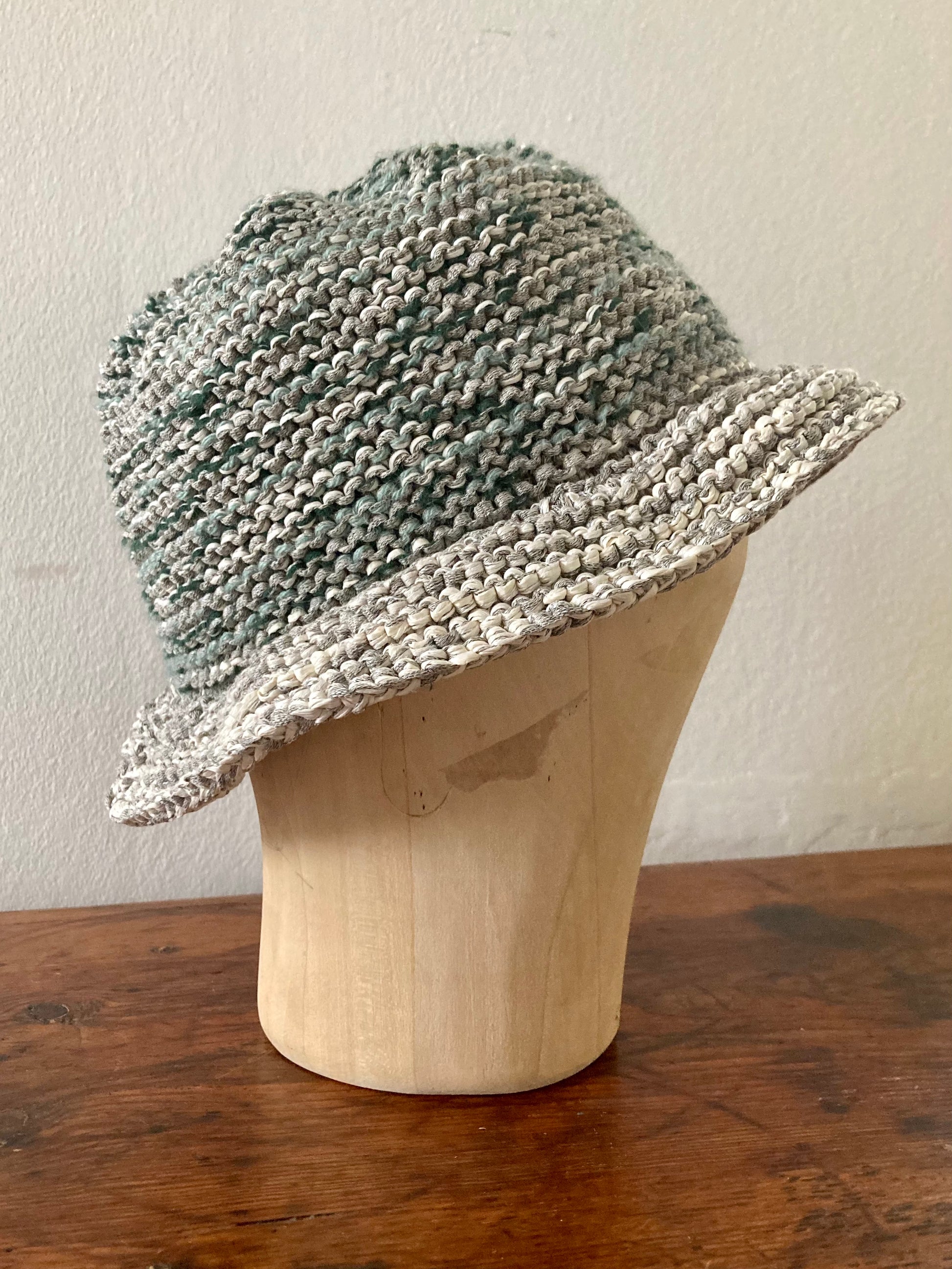 Handgestrickt aus Viskose, Bast, Bambus, Alpaka, Seide, Baumwolle, Stahl.